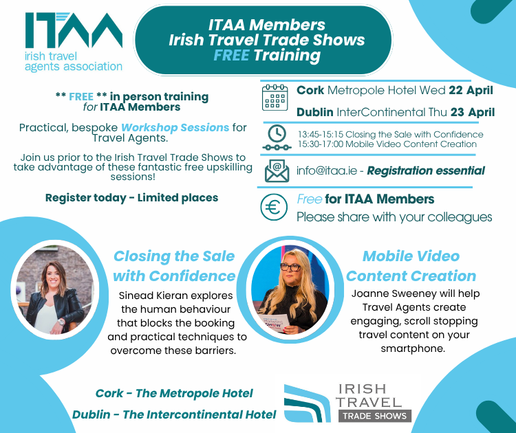 The Irish Travel Trade Shows are an unrivalled opportunity for Licenced Travel Agent/Tour Operators Proprietors, Managers, Frontline Professionals and travel media to connect FACE-TO-FACE with over 120 of the World’s Best known and most exciting Brands.